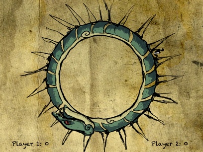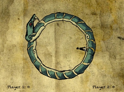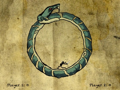 Global Game Jam 2012 - This project was done at the 2012 Global Game Jam hosted at SCAD Atlanta on January 27-29, 2012. This year the theme was simply a picture of the ‘Ouroboros.’ The name of our game is Omnomoros. The game was designed for 2 players. The first player starts as the man on the back of the Ouroboros while player two starts as the Ouroboros. The player that is playing the man is trying to catch up to the head of the Ouroboros in order to kill it while at the same time, the player that is playing the Ouroboros is trying to eat the man. When a player accomplishes their task, the roles are swapped. This goes on forever keeping to the idea that the Ouroboros can signify infinity.